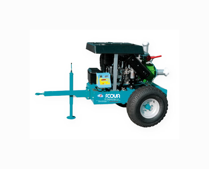 Gruppo motopompa per l’irrigazione agricola con avviamento elettrico e blocco chiave.